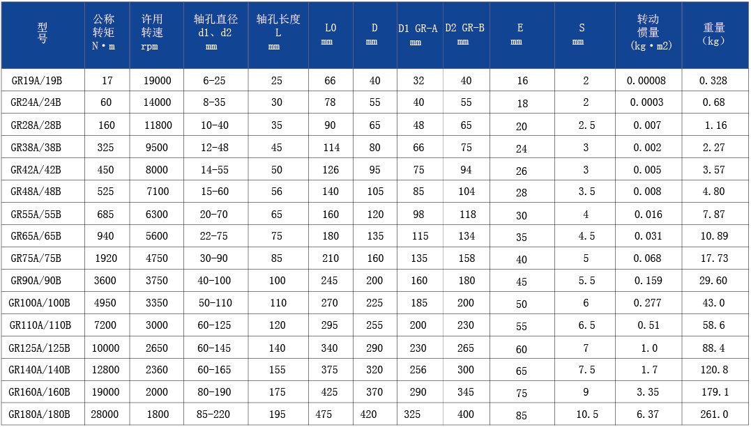 表中是彈性體的硬度為98shA時(shí)的公稱扭矩值。